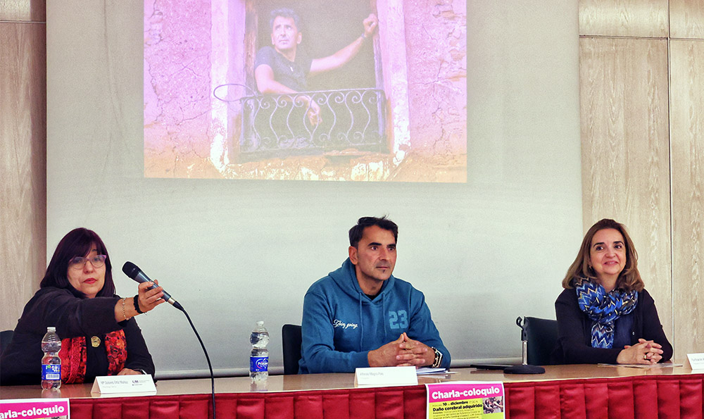 En este coloquio intervinieron Purificación Aparicio, trabajadora social del Ceadac, quién habló de las funciones del centro y las vías para acceder a él; y María Dolores Ortiz Muñoz, psicóloga clínica de la Universidad de Psiquiatría y Salud Mental del Hospital Universitario Infanta Elena de Valdemoro, cuya presentación se centro en la salud mental en personas con daño cerebral adquirido tras su regreso a casa. El coloquio contó también con el testimonio de Alfonso Magro, fotógrafo con DCA y exusuario del Ceadac.