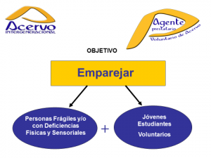 Los objetivos específicos son: crear la oportunidad de aprender unas generaciones de otras; que los jóvenes experimenten el aprendizaje y la enseñanza de materias útiles; promover la participación de los jóvenes como agentes promotores de cultura e inclusión social; mejorar la calidad de ocio y cultura de los beneficiarios; romper las barreras psicológicas y los prejuicios entre generaciones diferentes; mejorar la formación y el nivel académico de los jóvenes Agentes prestatarios.