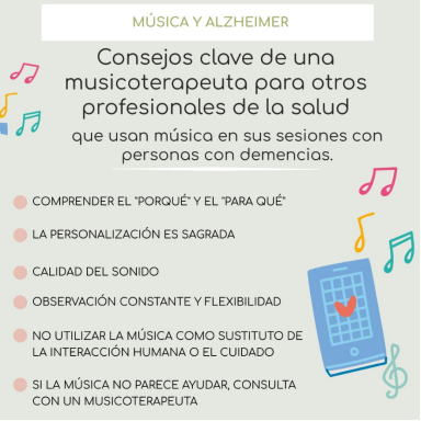 Consejos clave de una musicoterapeuta para otros profesionales de la salud que usan música en sus sesiones con personas con demencias