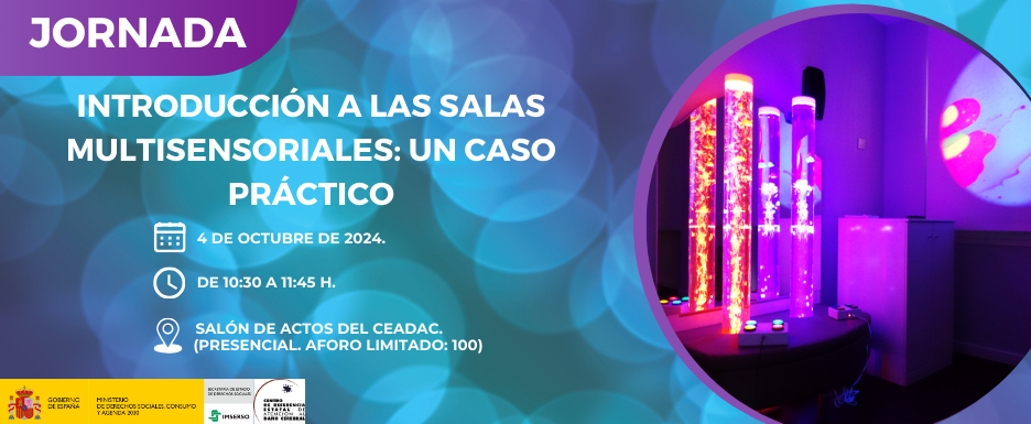 El 4 de octubre el Centro de Referencia Estatal de Atención al Daño Cerebral (Ceadac), dependiente del Imserso, celebrará la Jornada Introducción a las salas multisensoriales: un caso práctico. El evento tendrá lugar desde las 10:30 a las 11:45h. en el Salón de Actos del Ceadac y se realizará exclusivamente en formato presencial.